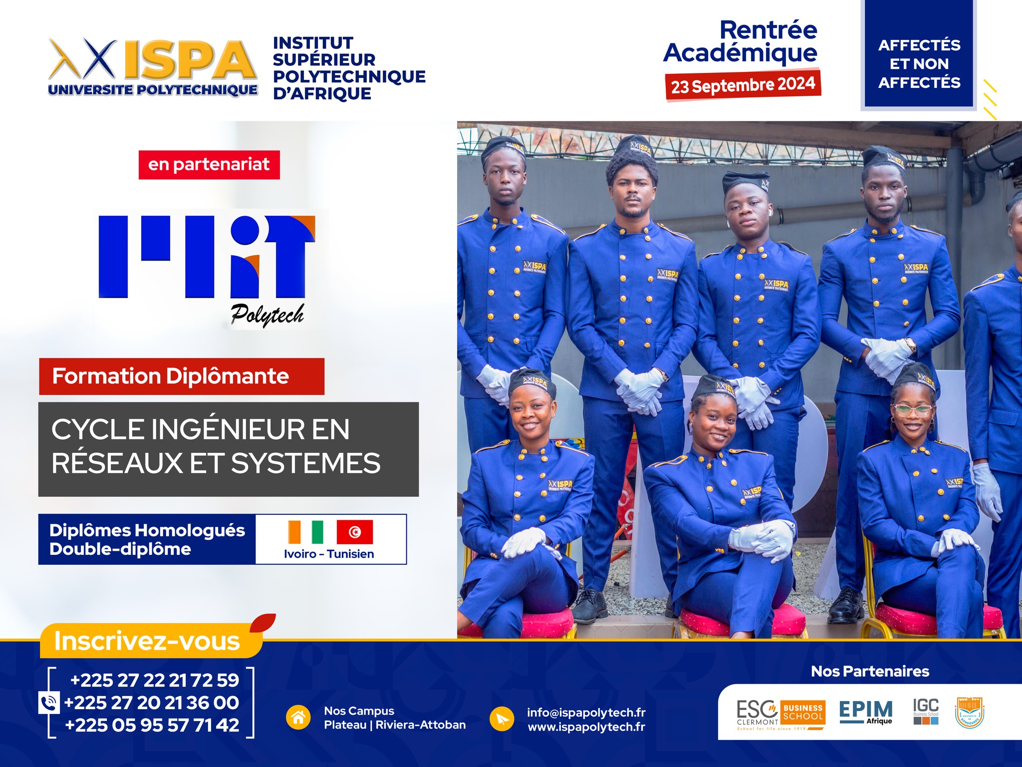 Les cursus de double diplôme apportent aux étudiants Ivoiriens et internationaux une formation scientifique et technique de haut niveau bénéficiant des points forts des partenaires académiques, des compétences linguistiques et d’adaptation à des environnements culturels différents, au travers d’un séjour de longue durée dans chacun des deux pays concernés.